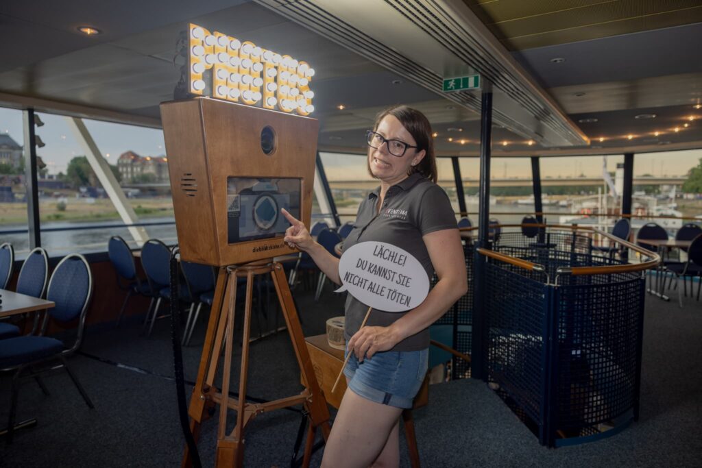 Über unser Buchungsformular erreichte uns die Anfrage zum Mieten unserer Fotobox für eine Firmenfeier in Dresden. Das Erlebnisweingut “Schloss Wackerbarth” plante ein Firmenevent zum 20-jährigen Bestehen. Es soll auf dem Schiff MS „Gräfin Cosel“ gefeiert werden.