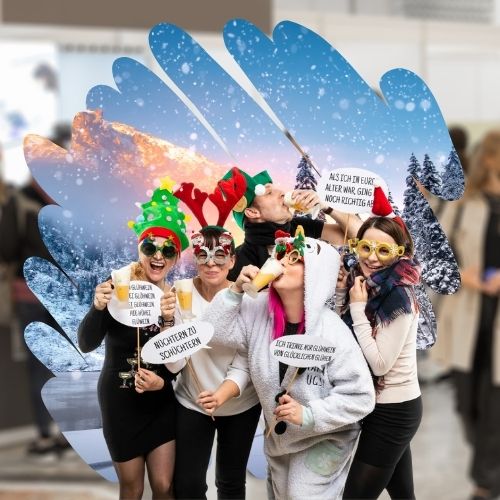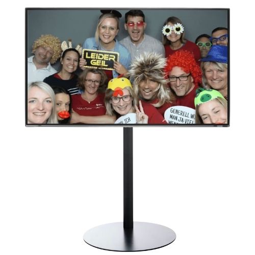 Mit unserer Fotobox kannst du dein Firmenlogo oder einen einprägsamen Text geschickt auf allen Eventaufnahmen platzieren!